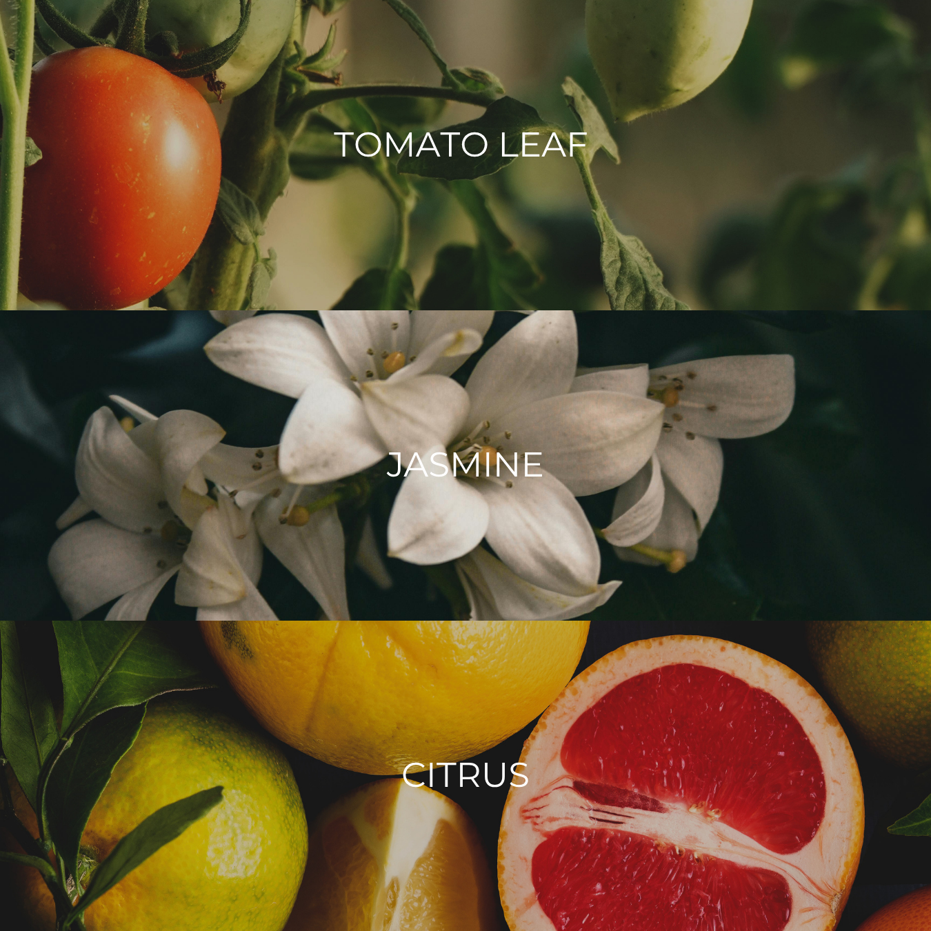 · Tomato Basil — Tomato Leaf • Coriander • Jasmine • Basil • Peach • Twig • Wild Herb • Citrus
